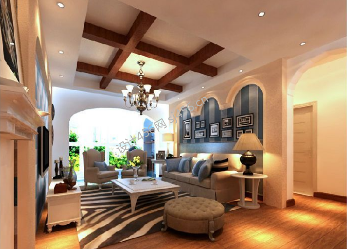 保利云山120㎡地中海风格客厅走道装修案例