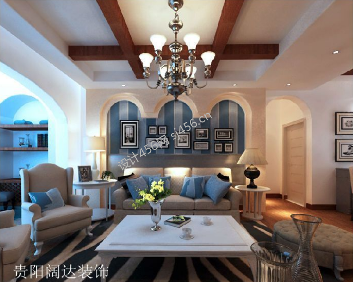 保利云山120㎡地中海风格客厅装修案例