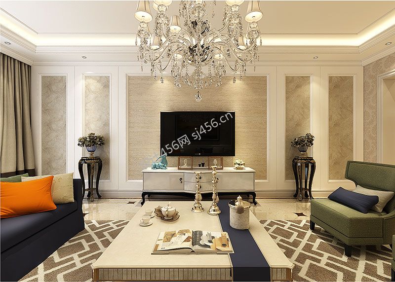 简欧别墅客厅时尚简约电视墙设计装修效果图