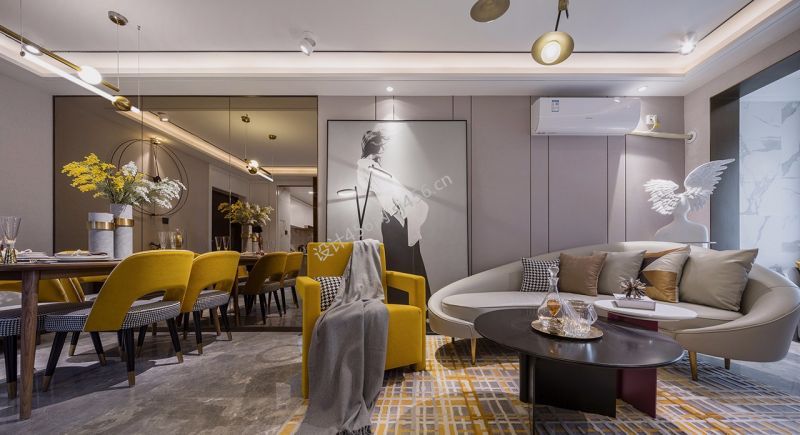 轻奢风格127平米三居室客厅沙发背景墙装修效果图