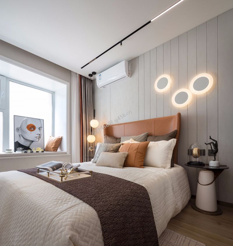 127平米三居室卧室床头壁灯装修效果图
