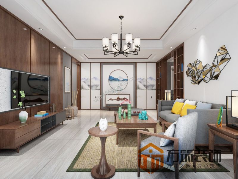 137平米三居新中式客厅装修设计效果图