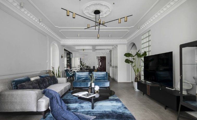 美式风格92平米三居室客厅吊灯装饰装修设计图