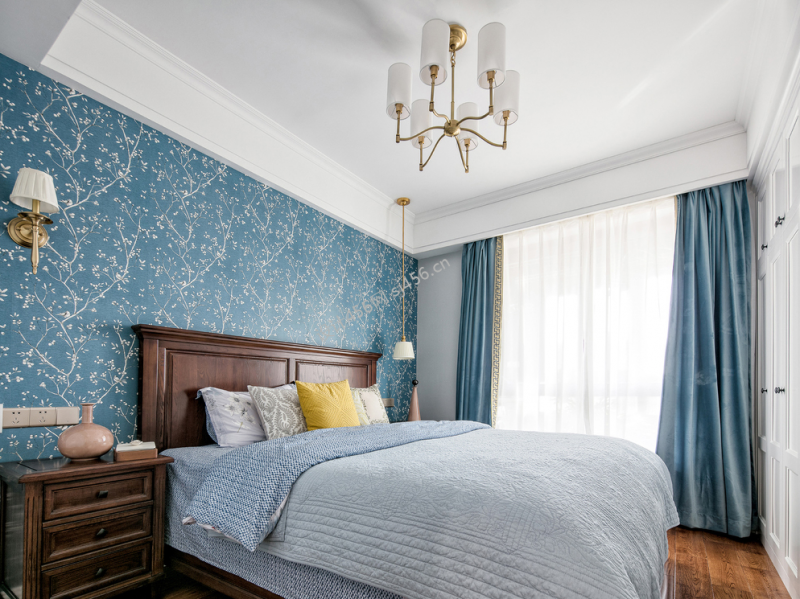 美式风格三居室卧室壁纸装修效果图