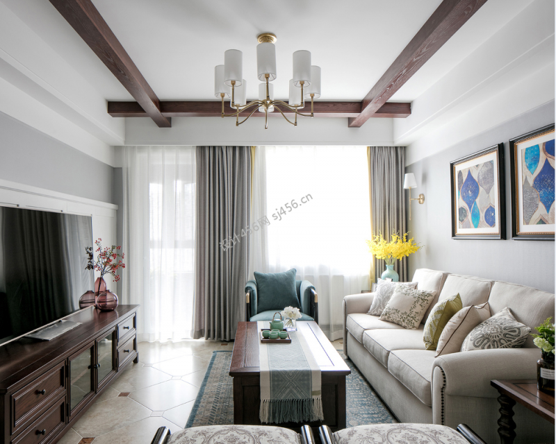 美式风格三居室105平米客厅地毯装修效果图