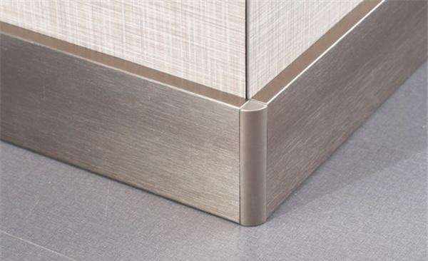 3. 不锈钢踢脚线:不锈钢踢脚线材质坚固,抗形变能力强,使用寿命长,后期没有维护难题。但是成本高,安装繁复,而且适用风格有限,一般只用于现代装修风格中。