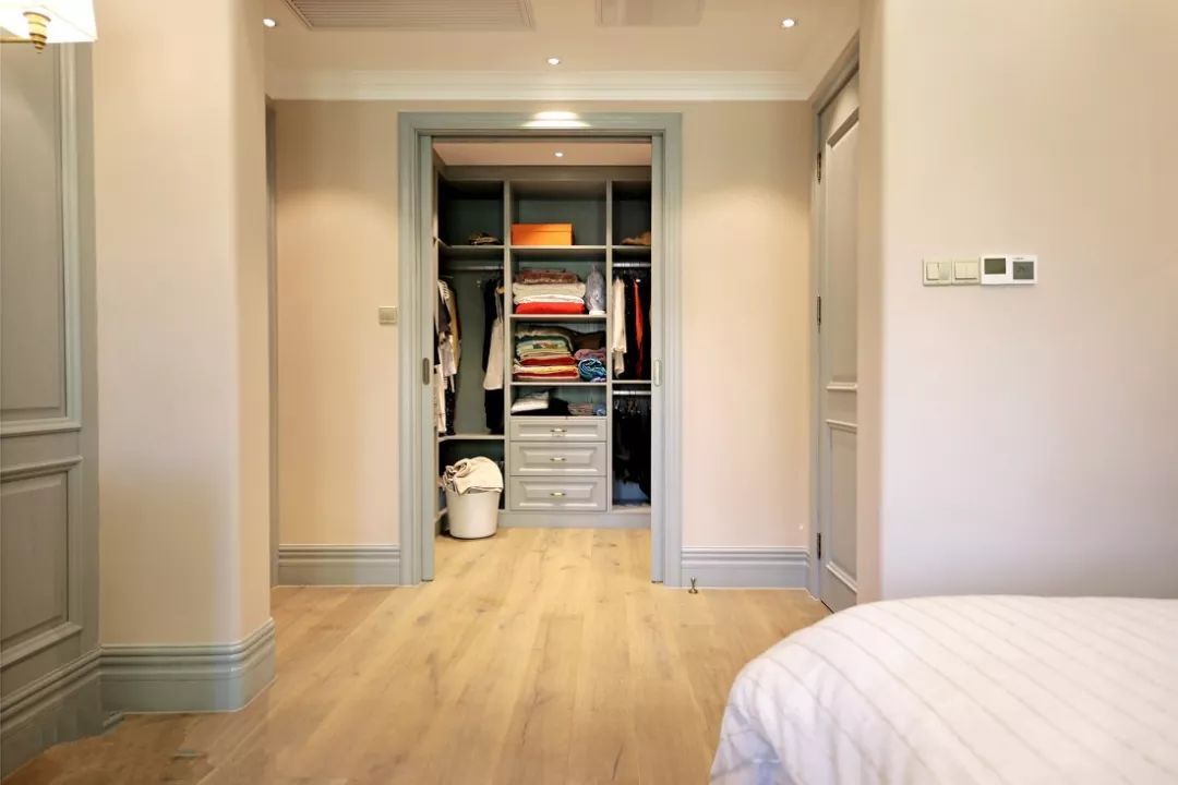 如果自己家不是顶层,就要注意防水的问题,由于楼上卫浴的防水并不能由你控制,因此稳妥的办法就是在衣帽间加一个防水吊顶。一般情况下,卫生间是做过防水的,但是由于改造等施工,可能会将原来的防水层破坏掉,因此要重新做防水,。如果预算允许的话,还可以把整个衣帽间都涂上防水涂料,如顶上、墙面、地面等。