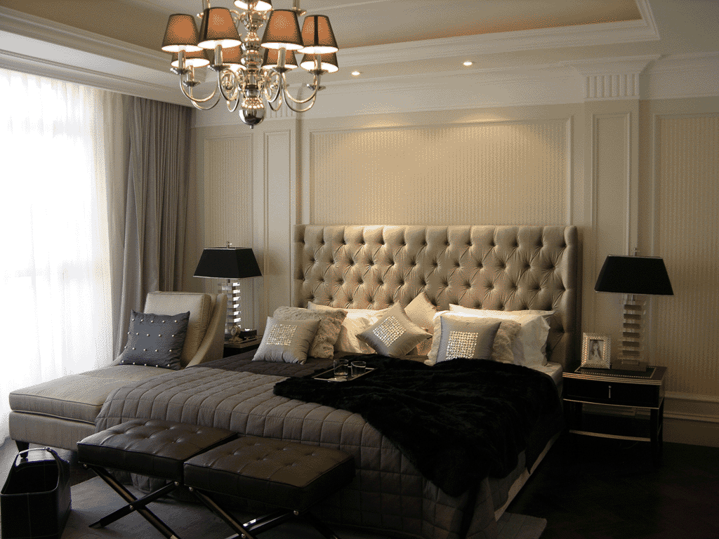 软包主要分为皮艺、布艺,而使用软包的卧室中,家具的风格都是比较重的,像欧式风格和后现代风格,色彩、质地都很柔软,能够有效的柔化空间。