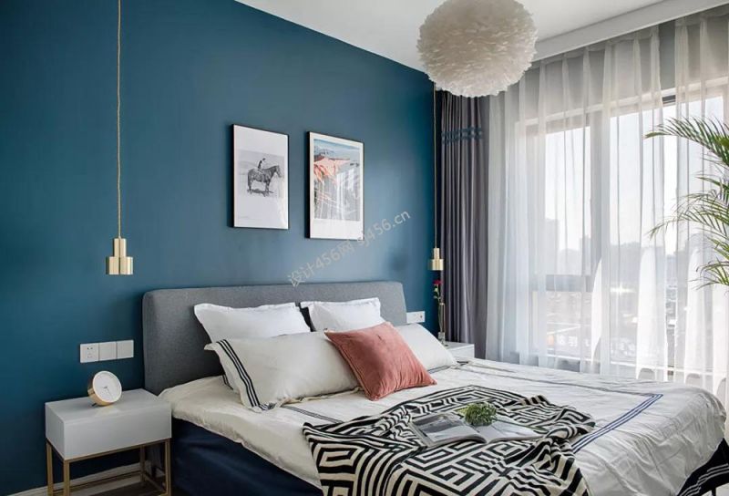 现代风格95平米三室两厅卧室窗帘装修效果图