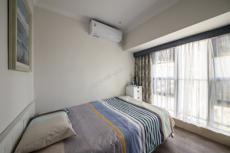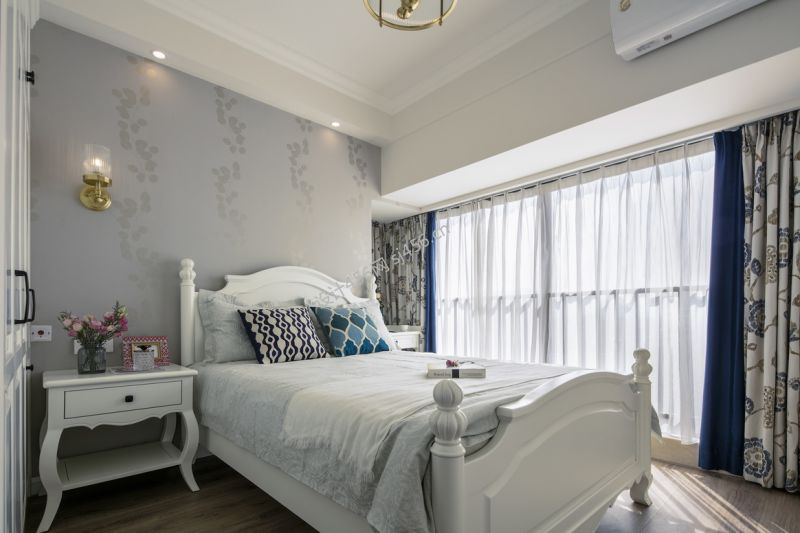 美式风格108平米四室两厅卧室窗帘装修效果图