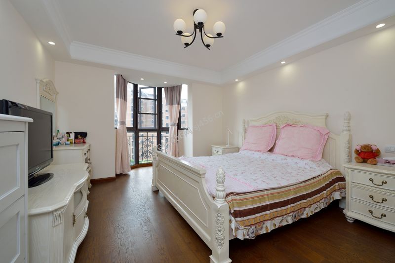 美式风格141平米三室两厅卧室窗帘装修效果图