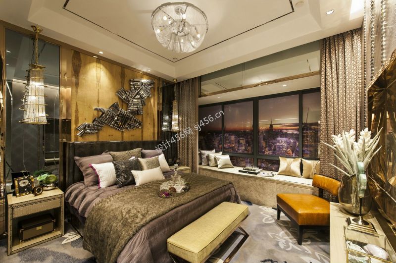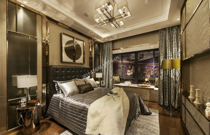 奢华风格126平米三室两厅卧室床头装修效果图