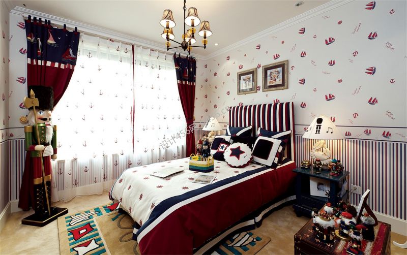 123平米地中海风格三室两厅卧室窗帘装修效果图