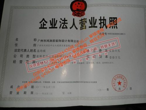 公司logo 广州鸿涛居装饰公司是经广州市工商局注册的公司,成立于2011年。主要经营范围:广州办公室装饰,广州家庭装饰,广州店铺装饰。广州办公室、酒吧、刷漆、石膏板吊顶, 轻钢龙骨石膏板隔断 ,橱窗制作、矿棉板吊顶,厂房吊顶,厨房装修,铝扣板吊顶,办公楼吊顶,轻钢龙骨吊顶隔断, 卫生间吊顶隔断 、展会、玻璃隔断隔墙工程、刷乳胶漆、楼梯制作、阳台翻新。广州天信装修公司集设计、施工、预算、材料、工程监理等全面服务于一体的综合性公司.广州天信装修公司承接;广州厂房装饰、广州写字楼装饰、广州办公室装饰、店铺装饰、餐饮娱乐装饰、家居别墅装饰等各类室内外的工程设计与施工。 本公司本着质量、信誉、争创一流的经营理念,以人为本,质量第一,信誉第一,杜绝返工,打造品牌为经营宗旨 ,竭诚为新老客户服务。公司所用的材料均符合国家环保规定的绿色环保型装饰材料,详细的施工计划,精确的材料预算,工程监理全程质量监管,让业主的轻轻松松装修,省心省事。 本公司承诺:绿色环保达标材料,工程质量全程监督,独特的设计风格以及最周到的服务! 【服务理念】 用心设计、精心施工、热心服务,让客户省心、放心、舒心。 【经营理念】 绿色环保材料虽贵却不敢减物力,绿色环保工序虽多更不敢省人工。做一单生意,交一方朋友。 【服务类型】 高档住宅、写字楼 别墅、公寓、样板间,承接家庭各类旧房,二手房装饰装修 【装修方式】 硬装、软装、旧房翻新、楼体改造等 专业推荐室内装修装饰工程 专业技工团队 免费量房报价 全包半包清工任您选择 客户至上、信誉第一、诚信待人、优质服务、做顺心满意工程! 免费设计、同等价格比质量,同等质量比价格