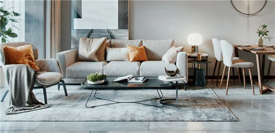 柔软的布艺沙发,落座瞬间,有一种被温暖环抱之感,橙色抱枕,提亮空间,金属质感的台灯,演绎出设计的魅力。