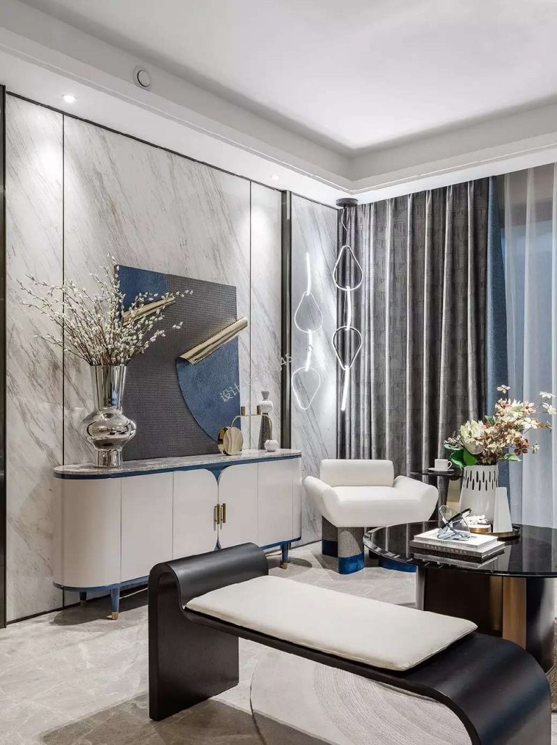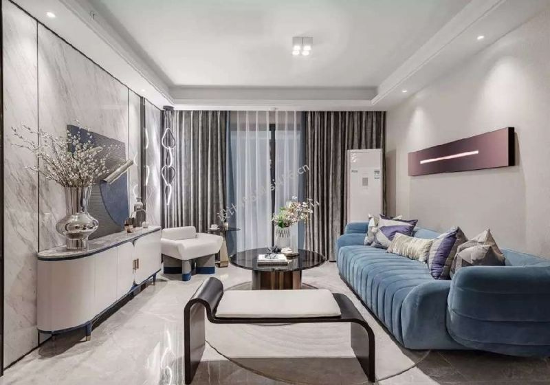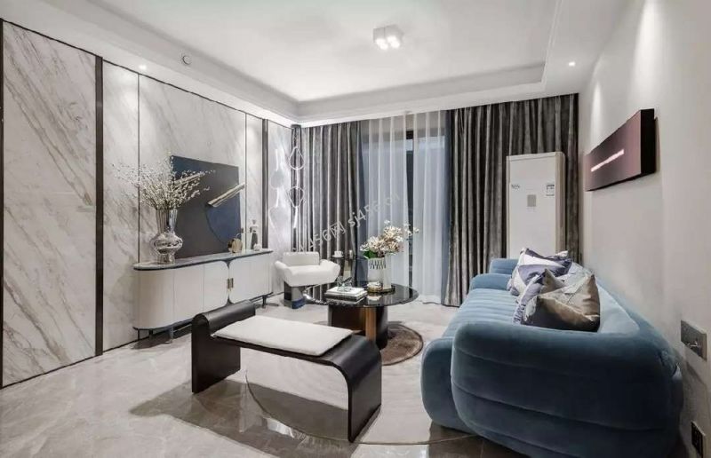 100平米现代轻奢三居室客厅格局装修案例