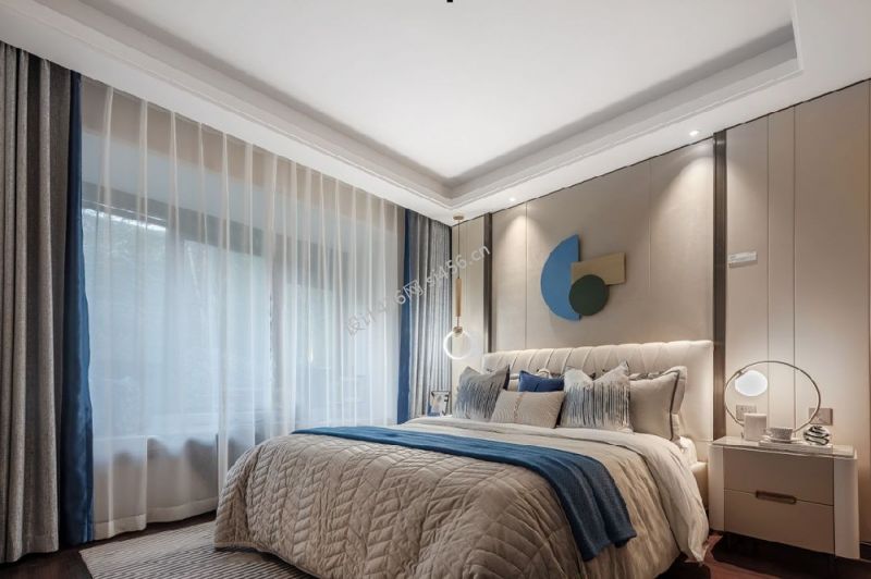 现代轻奢100平米三居室卧室窗帘装修实景图