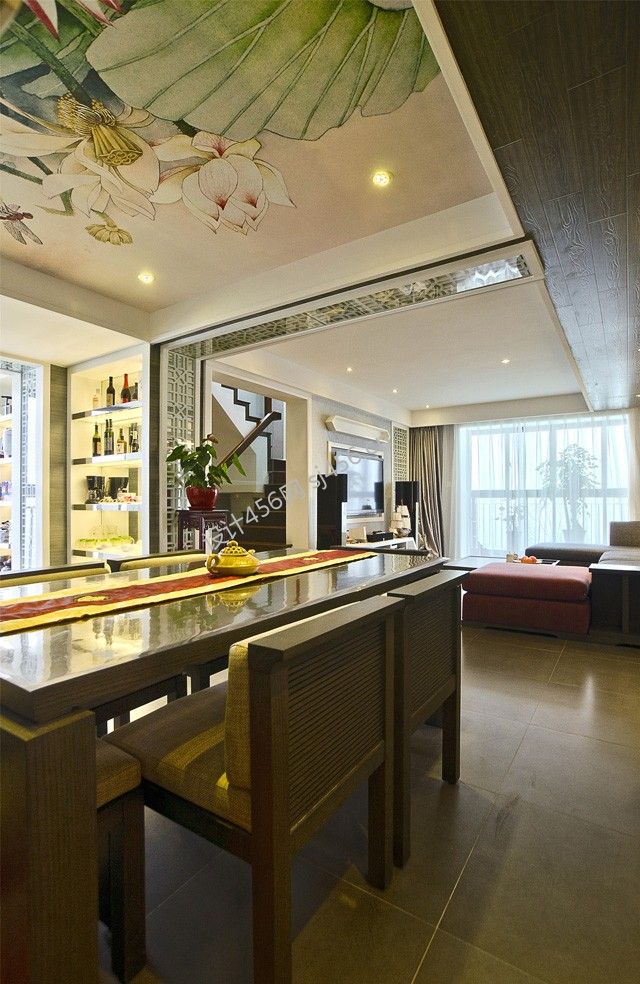 现代中式180平米别墅餐厅装修效果图欣赏