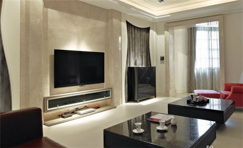 其次,电视与背景墙的距离也很重要,因为电视在运作时,会产生热量,电视与墙面距离太近的话,会造成墙面发热,时间久了会产生“烤印”。如果墙面用的是壁纸,温度过高容易发生火灾,因此它们两者之间的距离要保持在10cm左右比较合适。