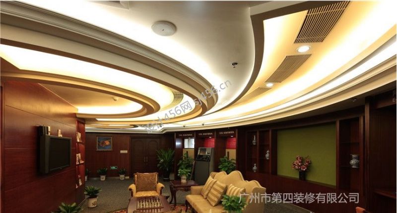 1000平米办公楼现代简约休闲室吊顶装修案例