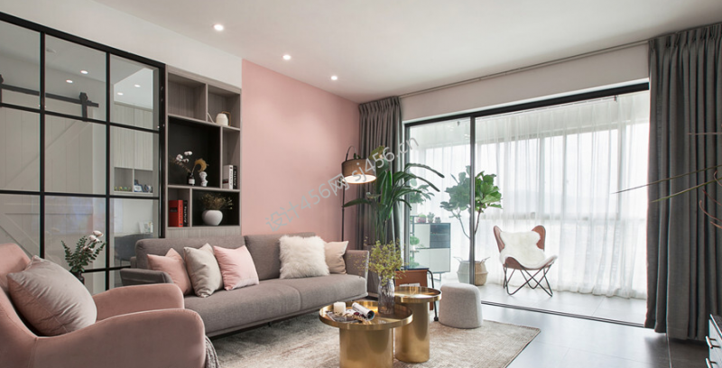 北欧风格92平米三居室客厅阳台隔断设计效果图