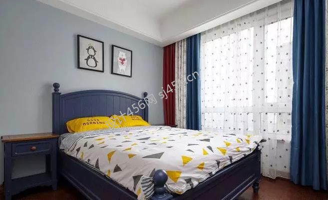 现代美式风格180平四居室卧室窗帘搭配设计图