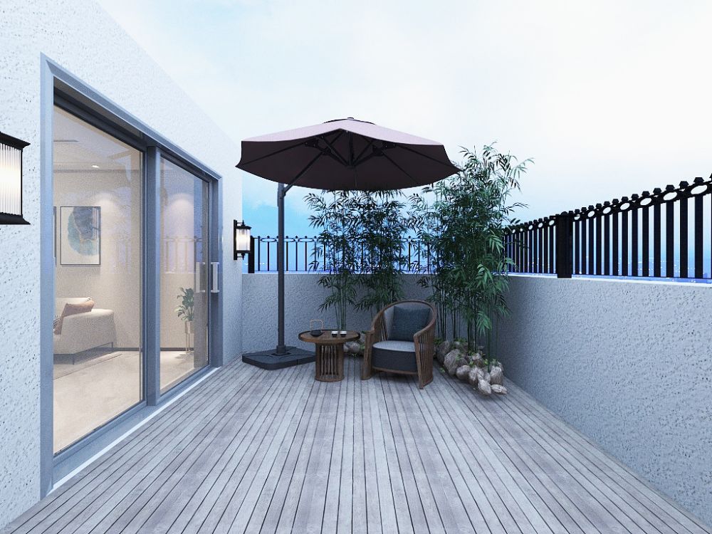 二楼露台是一个宁静的地方,享受自然的气息,阳光透过竹叶缝隙,变得无比温柔,时而微风吹过,在繁忙的生活中,去感受这份宁静。