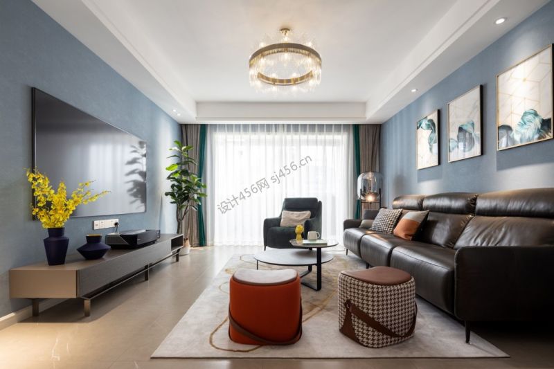 三居室118方现代风格客厅吊灯设计图欣赏
