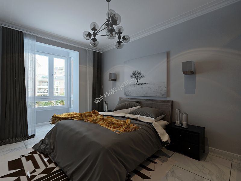 现代风卧室床头背景墙装修效果图