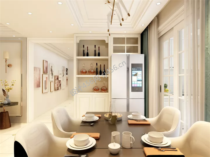三居114方欧式风格餐厅吊灯设计图欣赏