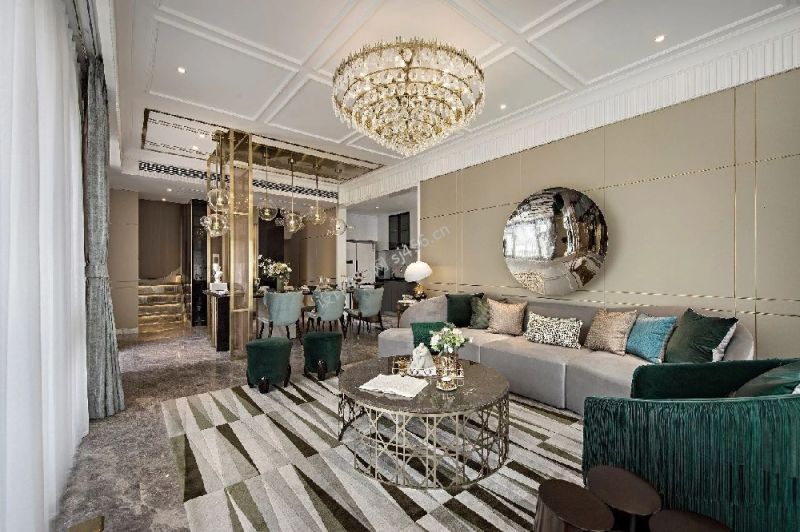 欧式豪华客厅三居110平装修设计图