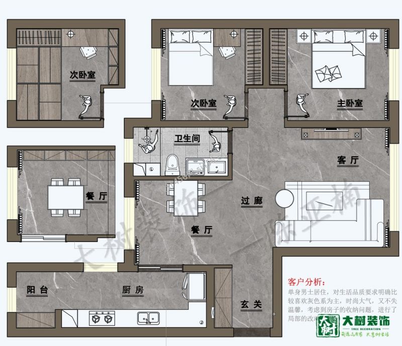 详情北欧风119.7平米三室两厅户型图装修效果图