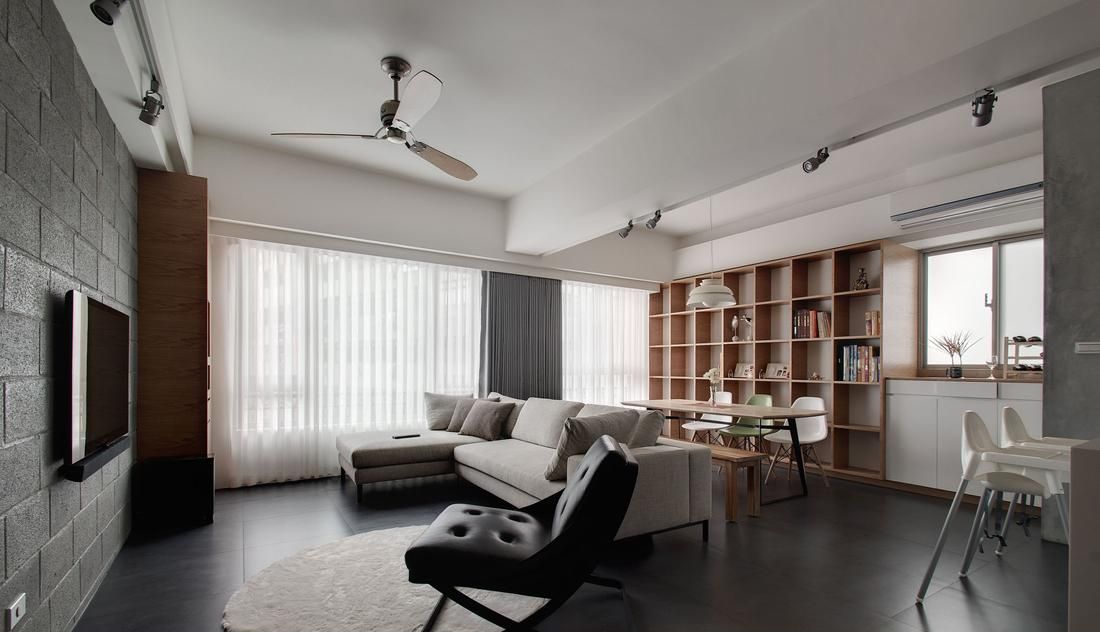 1、客厅的沙发背景墙设计成开放式的书架与展示架,客厅的边上还预留出了钢琴的位置。这个客厅的风格偏向现代美式风格,现代风格中的简洁都是硬装为基础,家具选择更为典雅、大气的款式,然后再加入一些石膏线、金属元素作为点缀。