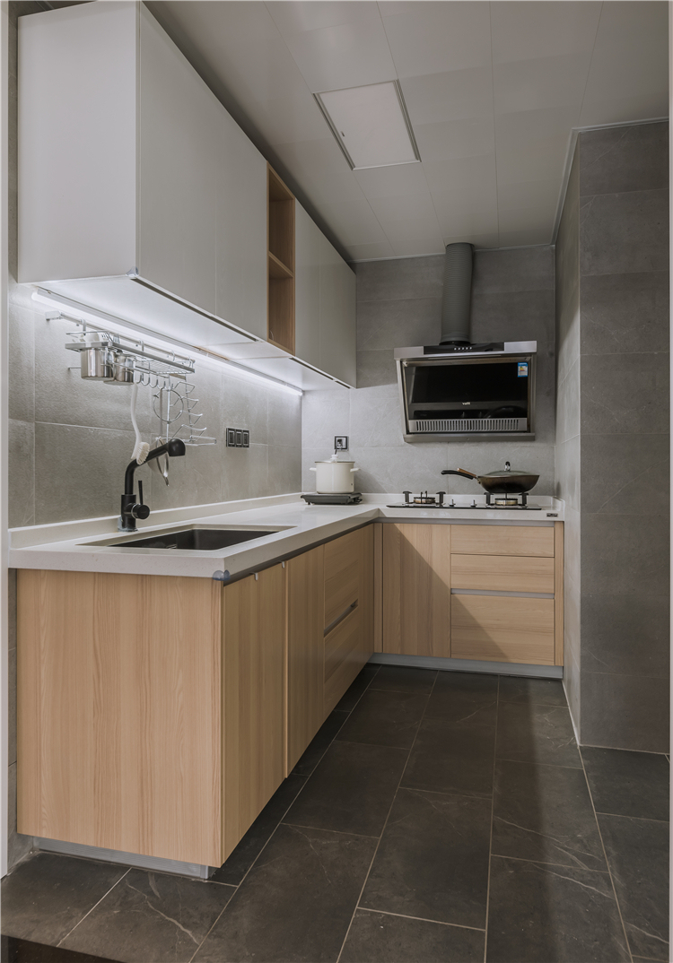 首先,对于厨房来说,橱柜是重点。现在不少朋友都会选择。让工人打造橱柜,这样更结实耐用,但是我们记得在定制橱柜的时候也要注意它的整体框架尺寸大小以及装修风格。应该和整体的装修风格相搭配。