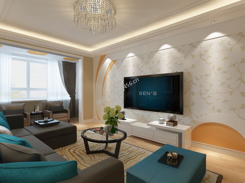 75平二居室现代简约风格客厅装修案例