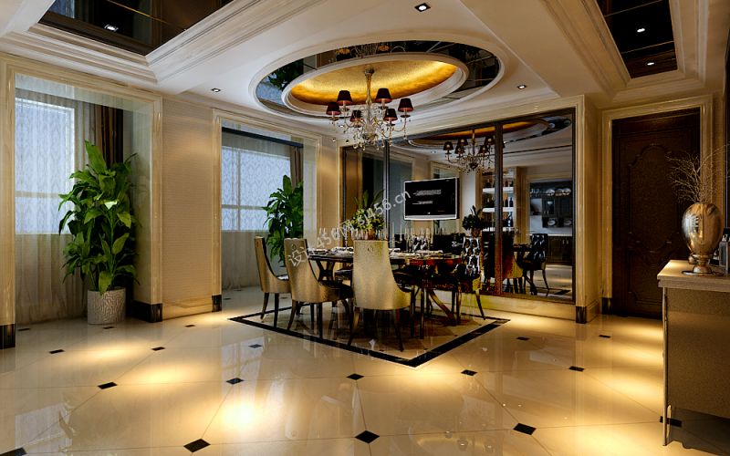 2020欧式风格餐厅效果图 餐厅圆形吊顶装修效果图