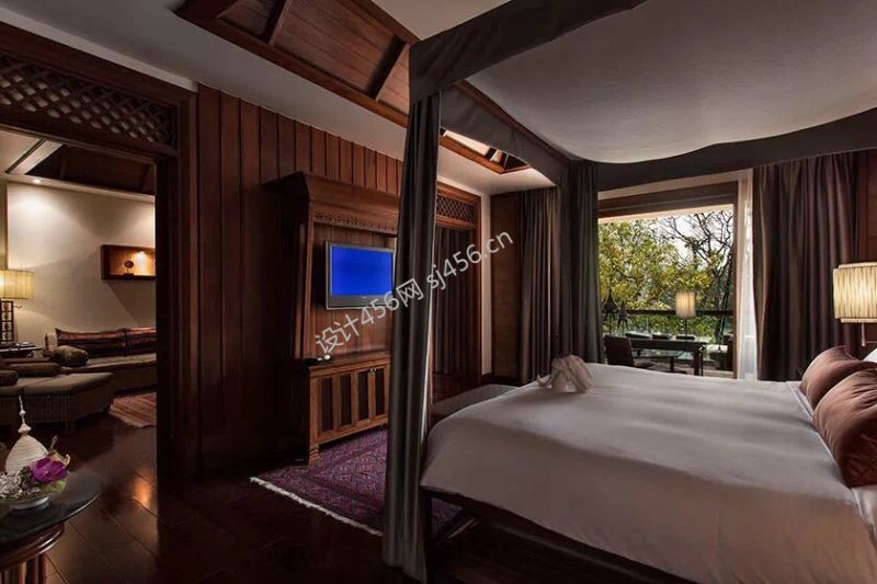 异域泰式风格240平别墅卧室电视墙装修设计图片