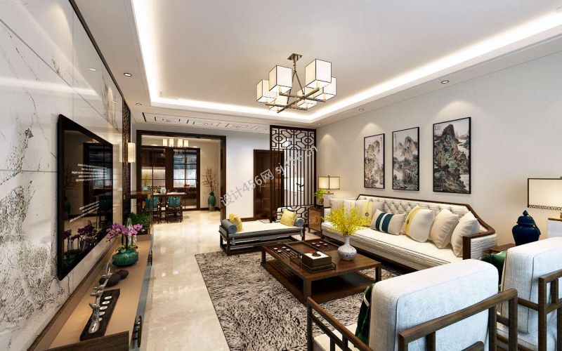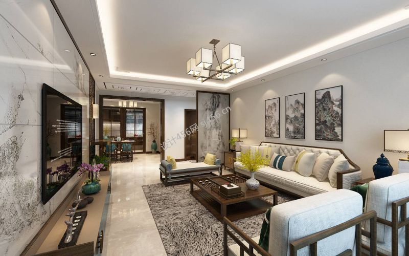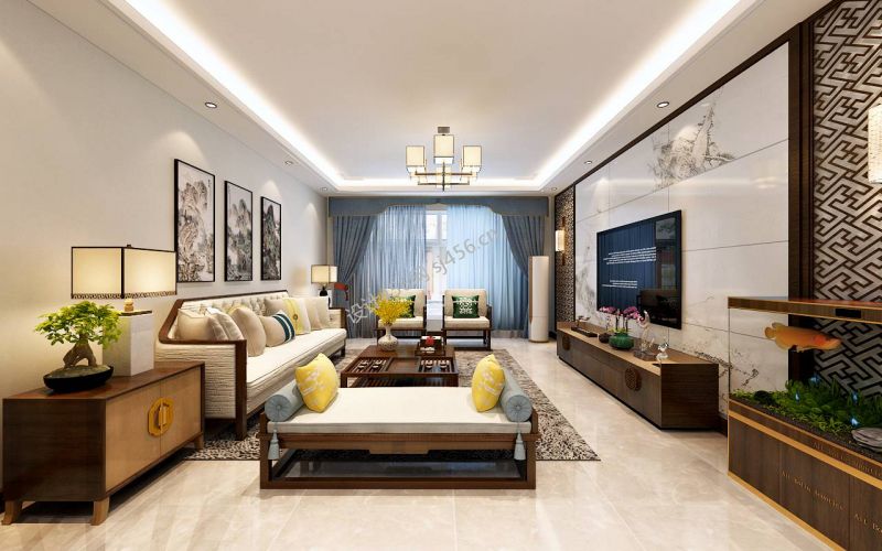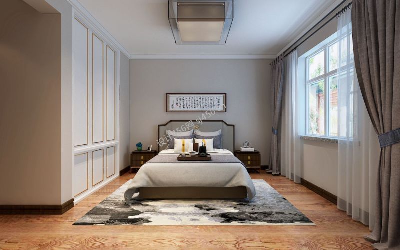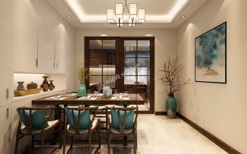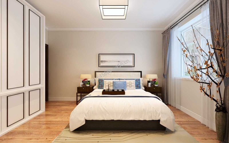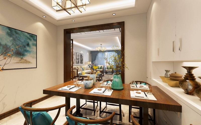 设计理念: 新中式风格是充满书香气息的,充满大气的感觉,本案以浅色来搭配咖色的家具、蓝色的窗帘,使得空间不在沉沉闷。烛台形态的吊灯充满中式的古韵气息。餐厅与门厅和客厅打通,整体空间看起来会更加开阔。选取一幅有禅意的山水画,作为背景墙是餐厅的一大亮点。中式风格的卧室也同样充满了大气,床头一幅水墨画配上古典的吊灯加上一株枯木的效果足以把中式风格表现的淋漓尽致。 新中式风格是充满书香气息的,充满大气的感觉,本案以浅色来搭配咖色的家具、蓝色的窗帘,使得空间不在沉沉闷。烛台形态的吊灯充满中式的古韵气息。餐厅与门厅和客厅打通,整体空间看起来会更加开阔。选取一幅有禅意的山水画,作为背景墙是餐厅的一大亮点。中式风格的卧室也同样充满了大气,床头一幅水墨画配上古典的吊灯加上一株枯木的效果足以把中式风格表现的淋漓尽致。