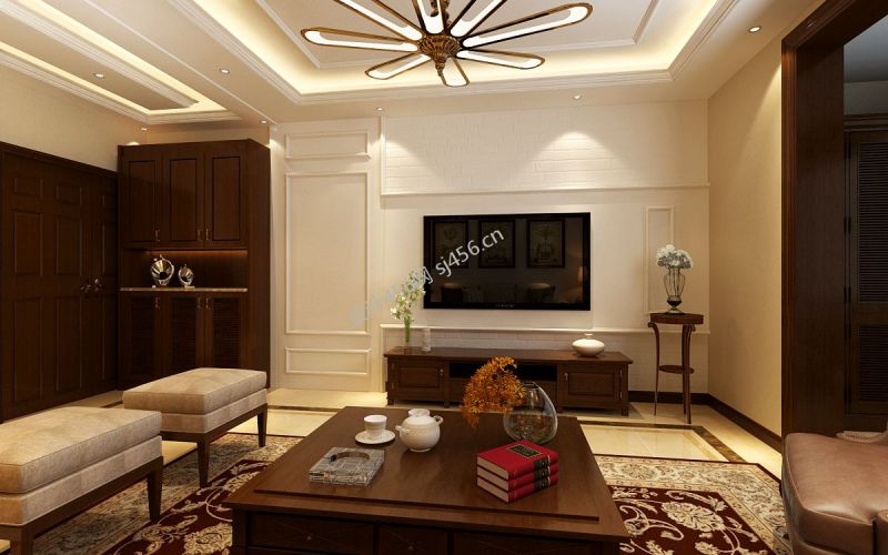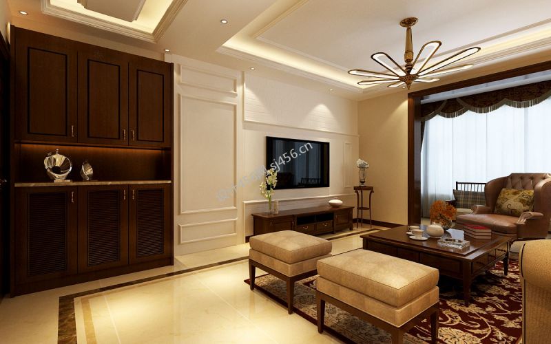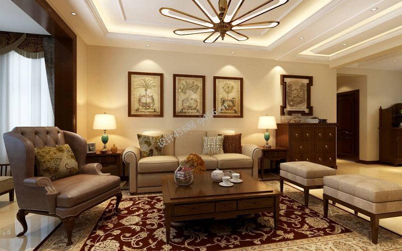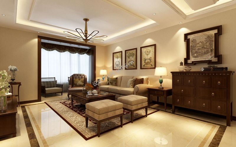 详情简美式风格110平二居室客厅沙发墙设计效果图