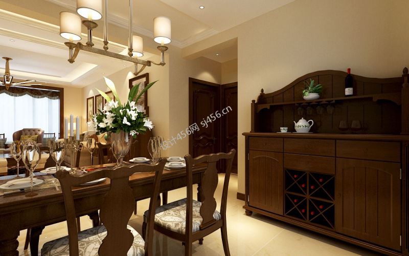设计理念: 简美式家具通常都带有浓烈的大自然韵味,且在细节的雕刻上匠心独具,很好地诠释出简美式的舒适和宁静。客厅整体呈现悠闲、舒适、 自然的氛围,让人感觉十分惬意;米色的布艺沙发搭配花色抱枕,整个空间看起来沉稳随意。餐厅采用一面造型独特的镜子来当做背景墙,一款时尚的吊灯搭配复古的餐桌椅,使得空间不沉闷,餐边柜收藏一些美酒同时又具备很强的储存功能。 简美式家具通常都带有浓烈的大自然韵味,且在细节的雕刻上匠心独具,很好地诠释出简美式的舒适和宁静。客厅整体呈现悠闲、舒适、 自然的氛围,让人感觉十分惬意;米色的布艺沙发搭配花色抱枕,整个空间看起来沉稳随意。餐厅采用一面造型独特的镜子来当做背景墙,一款时尚的吊灯搭配复古的餐桌椅,使得空间不沉闷,餐边柜收藏一些美酒同时又具备很强的储存功能。
