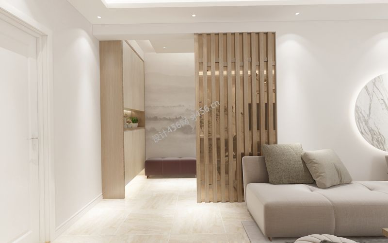 82平米现代中式风格两居客厅玄关隔断装修效果图