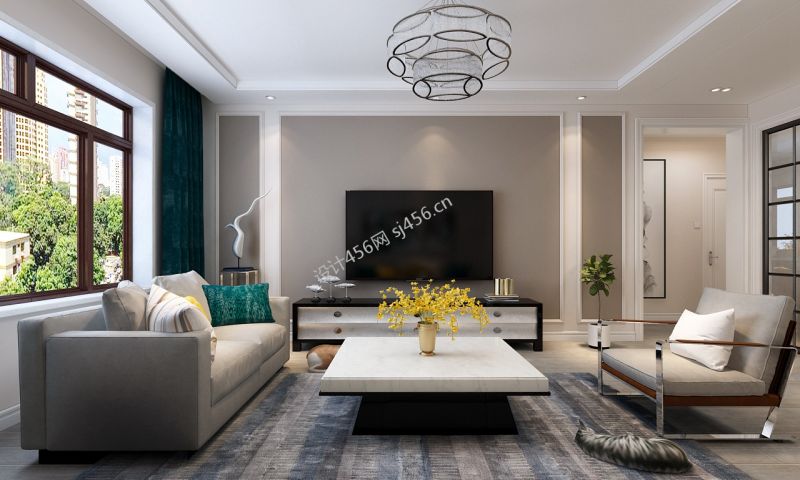 90平米现代风格二居室客厅吊灯装潢效果图