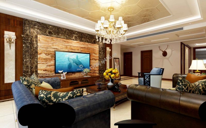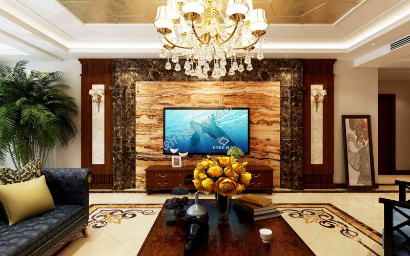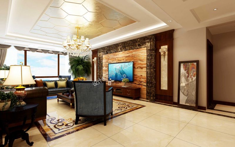 详情美式风格120平米二居新房客厅电视墙装修效果图