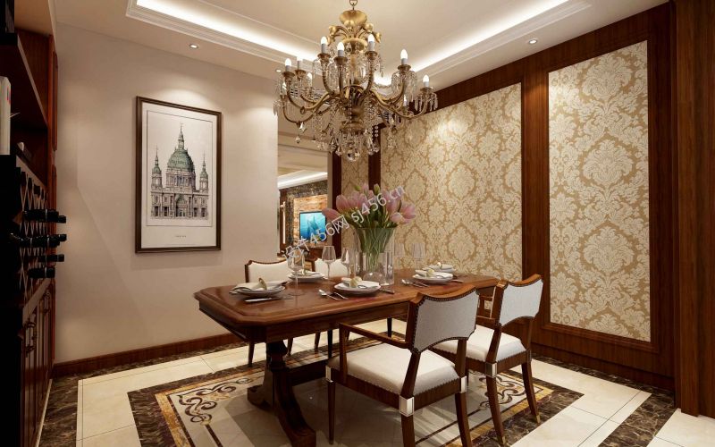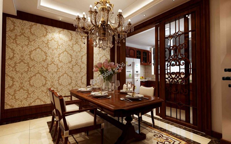 美式风格120平米二居新房餐厅背景墙装修效果图