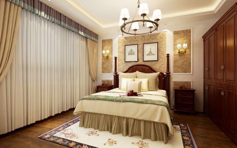 美式风格120平米二居新房客卧室床头墙装修效果图