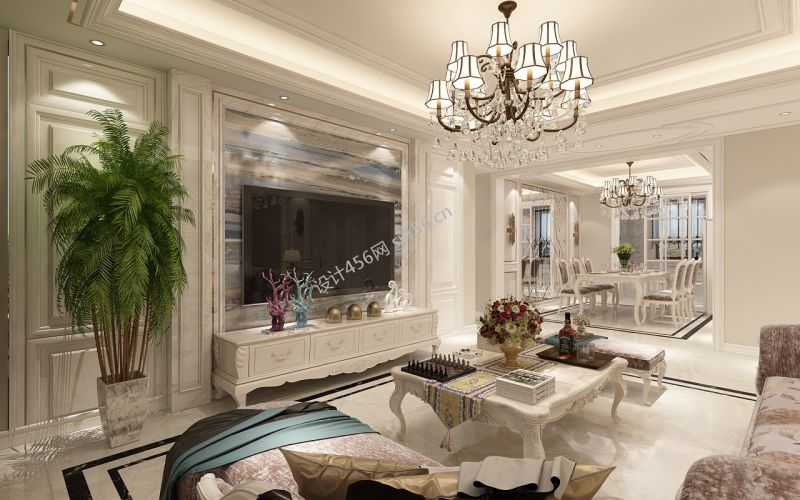 120平米简欧风格两居室客厅吊灯装潢效果图