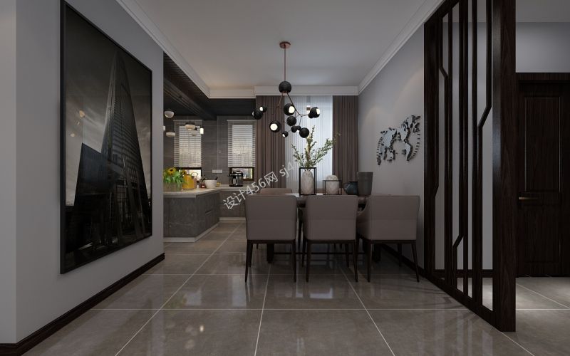 辰能溪树庭院现代风格进门餐厅玄关效果图2020