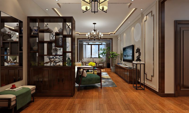 中海文昌公馆中式风格客厅隔断柜装饰效果图