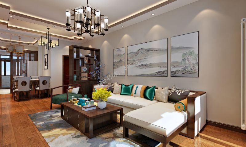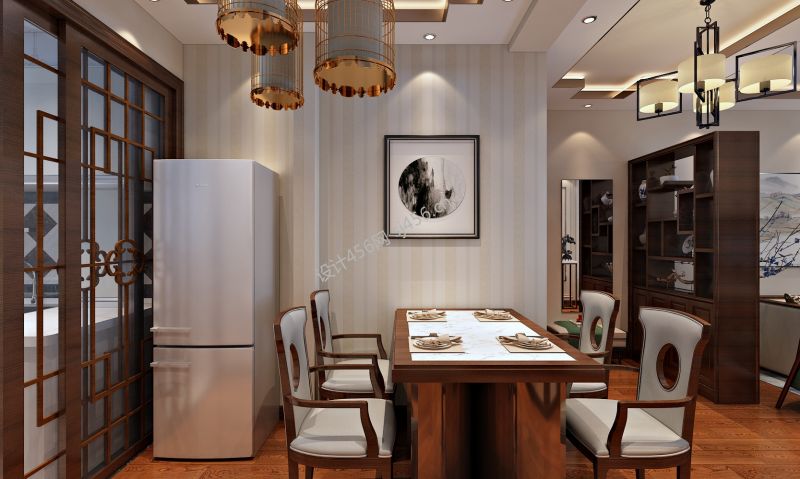 中海文昌公馆中式风格新房饭厅背景墙设计效果图