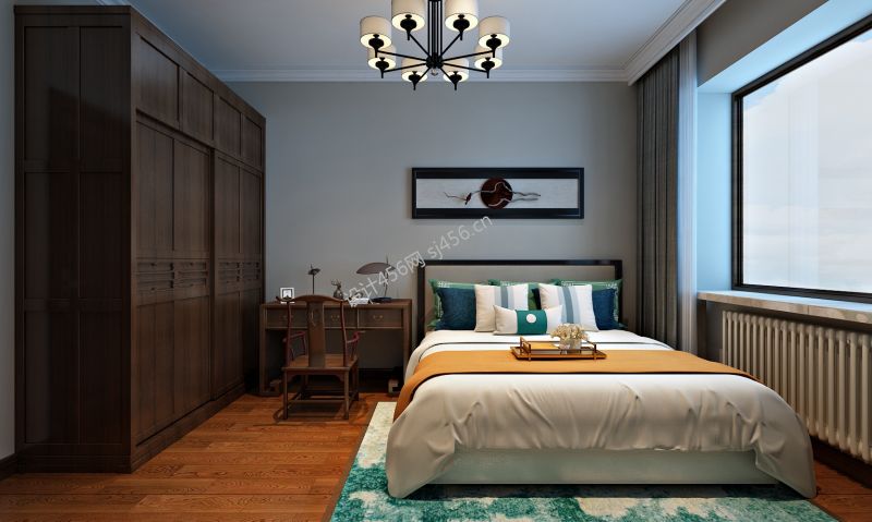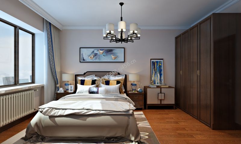 中海文昌公馆中式风格卧室实木家具设计效果图